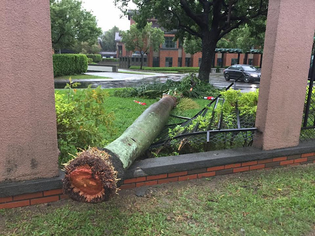 On our campus alone, several houses on campus lost electricity. One older home had two windows blown in. I think four trees were completely blown down. On the island, millions of residences lost power. In Taichung, scaffolding from a high rise under construction was decimated.