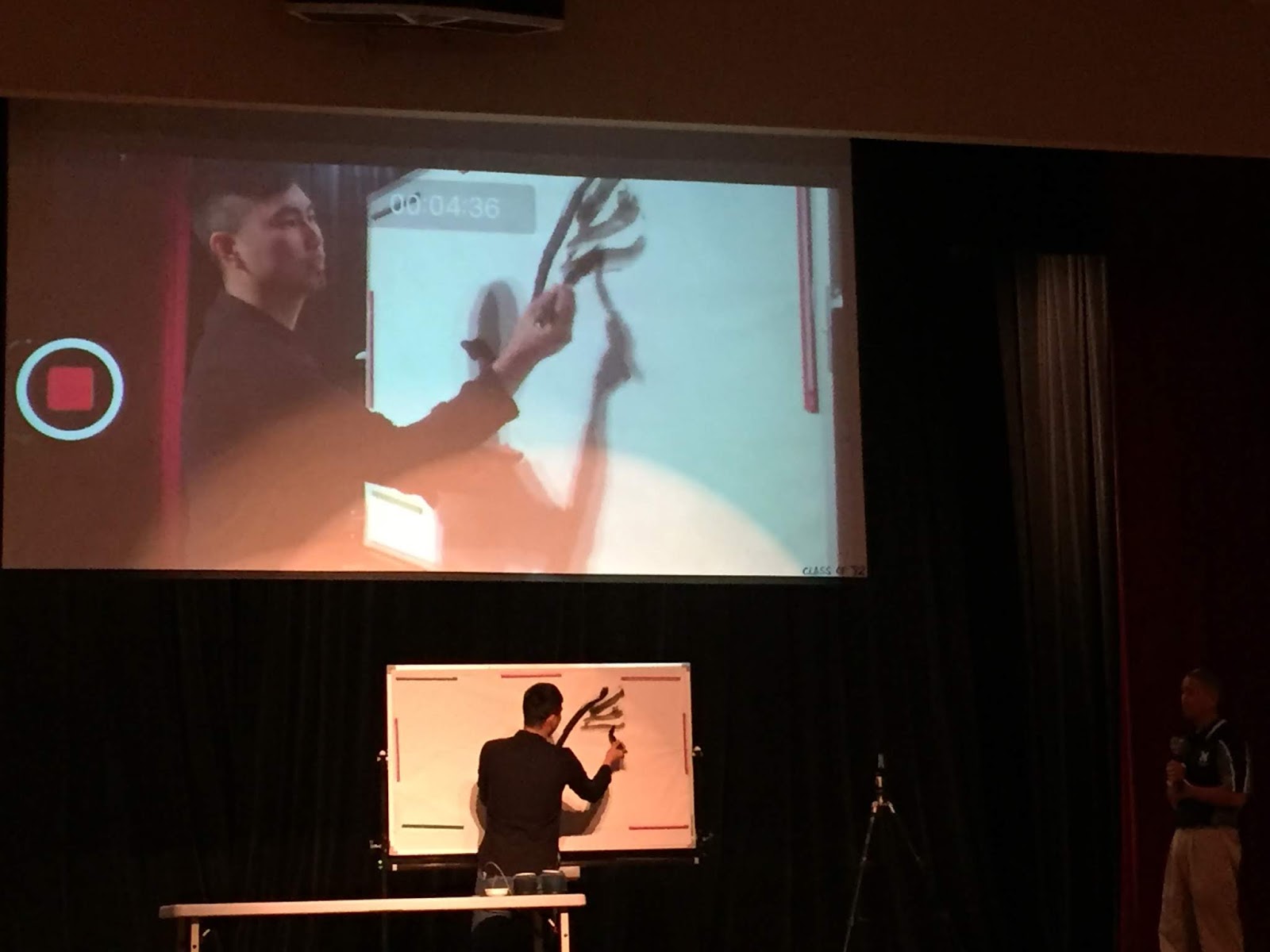 While sharing an ancient legend of the eagle, he painted employing Chinese techniques.